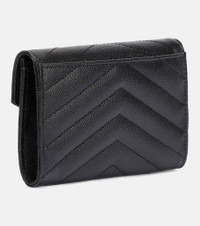 Approach mid-day coffee dates in style while holding Saint Laurent's Monogram Small wallet in hand. Crafted from leather and with a matelassé quilted finish, this flap-over style comes emblazoned with the label's signature YSL monogram in silver hardware for instant recognition. Product Details - Closure: snap-buttoned fastening - Internal details: Card slots, leather lining - Material: calf leather - Comes with dust bag - Comes with a box - Made in Italy - Item number: P00709774 Size & Fit - Height 9cm-3.5" - Width 13cm-5" - Depth 2cm-1"