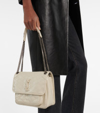 Made from quilted leather, Saint Laurent's Niki shoulder bag has a foldover top with a magnetic fastening, tonal logo hardware and hangs from a chain shoulder strap. Product Details - Internal details: internal slot pocket, internal zipped pocket, fabric lining - Chain shoulder strap - Color of chain strap: silver - Made in Italy - Designer color name: Blanc Vintage - Closure: magnetic fastening - Color of fastening: silver - Comes with dust bag - Front pocket - Material: leather - Item number: P00777749 Size & Fit - Height 20cm-8" - Width 28cm-11" - Depth 9,5cm-3.5" - Length shoulder strap 104cm-41"