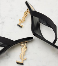 Since its conception in 1961, Saint Laurent has been coveted for its elegant Parisian aesthetic. Meticulously crafted from satin crepe, the Opyum mules are complete with 85mm Cassandre heels for an iconic finish. Product Details - Upper: satin - Lining: leather, fabric - Sole: leather insole and sole - Color: black - Toe shape: almond open toe - Made in Italy - Includes: shoe box - Designer color name: Noir - Hardware color: gold - Item number: P01135920