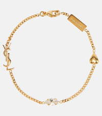 Complete your look the Saint Laurent way with the Opyum Heart charm bracelet. It features the label's logo plaque, YSL monogram, a crystal, and a heart charm evenly spaced along the golden curb chain. Product Details - Pendant: glass - Closure: lobster-clasp fastening - Material: brass - Designer color name: Or Laiton Vieilli/Cr - Item number: P00676481 Size & Fit - Length when open size S 16,5cm-6.5" - Length when open size M 19,5cm-7.5" - Max. width 0,6cm-0"