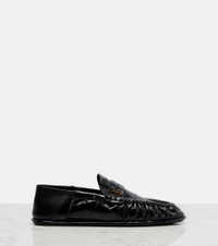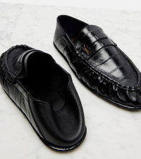 These polished loafers from Saint Laurent are destined to transcend trends and time. Detailed with the maison's Cassandre motif, they're made from patent leather with penny straps, gathered uppers, and foldable back panels for a mule-inspired style. Product Details - Upper: eel leather - Lining: leather - Sole: leather insole and sole - Color: black - Toe shape: almond toe - Made in Italy - Includes: dust bag, shoe box - Designer color name: Nero - Item color: black - Item number: P01144487 Size & Fit - True to size - Half sizes please take the next size up - European sizes