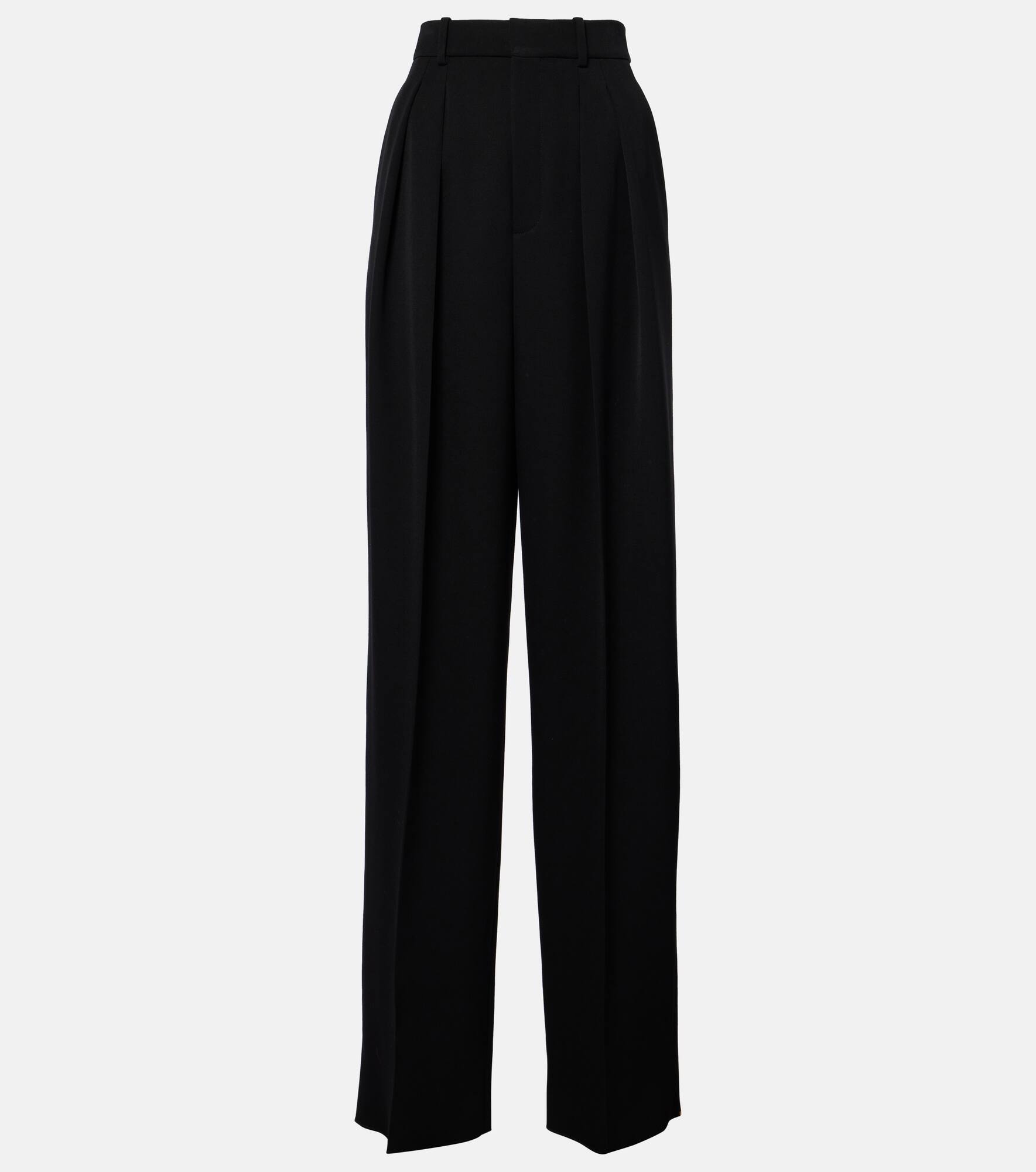 Pleated wool wide-leg pants Black
