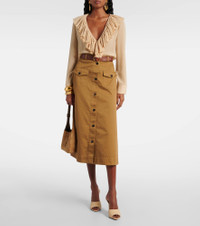 Since its conception in 1961, Saint Laurent has been coveted for its elegant Parisian aesthetic. The Romy mules are crafted from leather with almond peep-toes and are set atop 90mm slim heels. Product Details - Upper: leather - Lining: leather - Sole: leather insole and sole - Toe shape: pointed open toe - Made in Italy - Includes: shoe box, dust bags - Designer color name: Soft White - Hardware color: gold - Item number: P01027093 Size & Fit - Fits slightly large to size - we recommend trying a half size smaller - European sizes - 9cm-3.5" heel (size EU 38)