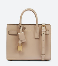 The structured Sac De Jour Nano tote bag is a signature Saint Laurent style. The design made from smooth calf leather with an adjustable shoulder strap for hands-free wear. We love the logo-engraved padlock hardware. Product Details - Detachable, adjustable shoulder strap, Top handles - Made in Italy - Designer color name: Dark Beige - Comes with dust bag - Material: leather - Internal details: leather lining - Closure: open top - Item number: P00777762 Size & Fit - Height 17cm-6.5" - Width 22cm-8.5" - Depth 10,5cm-4" - Min. length shoulder strap 101cm-40" - Max. length shoulder strap 121cm-47.5"