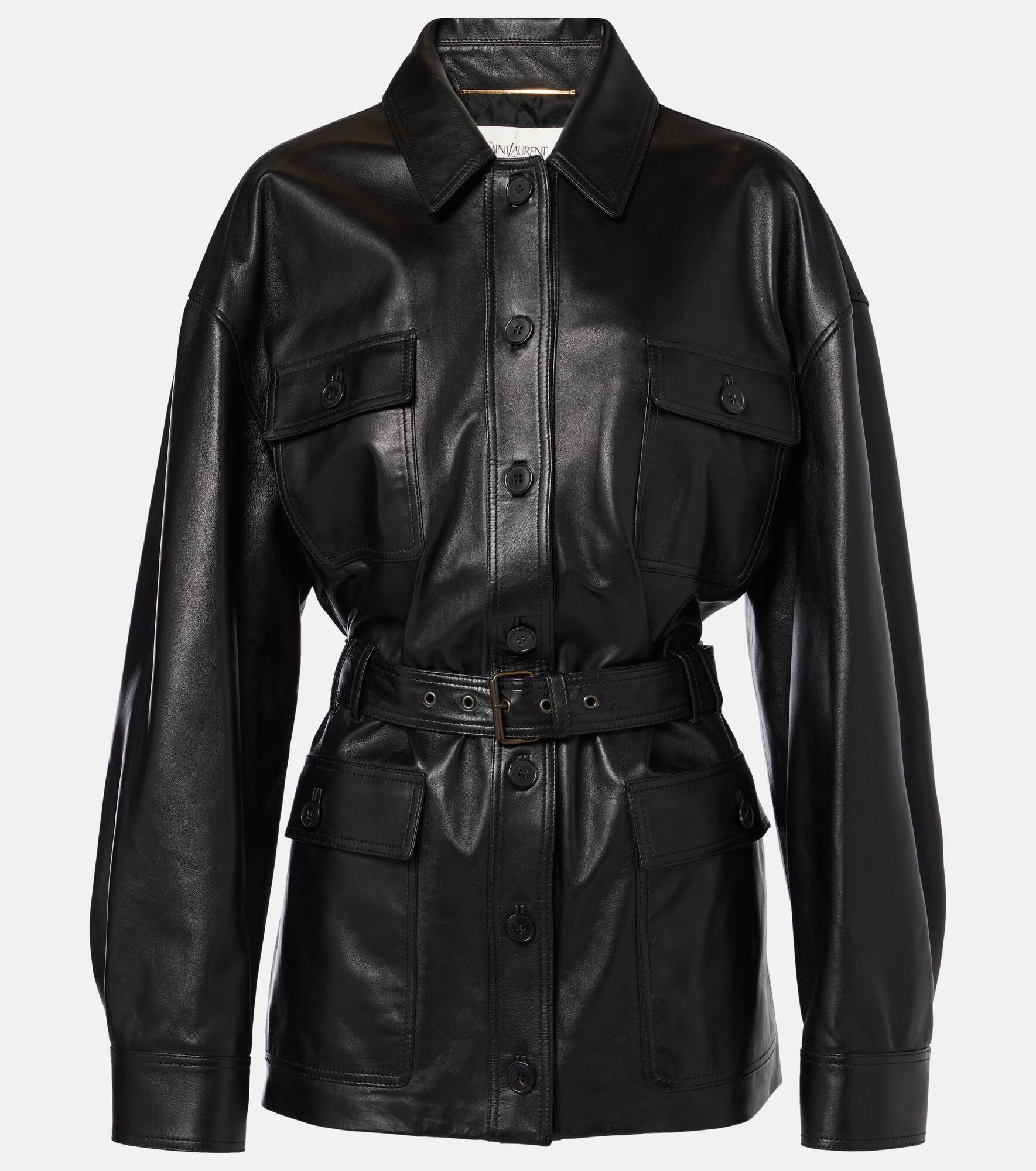 Product Details - Material: 100% lamb leather - Care instructions: do not wash - Made in Italy - Designer color name: Black - Lining: 100% silk - Contains non-textile parts of animal origin - Item number: P01012096 Size & Fit - True to size - Dropped shoulders - Loose fit, comes with belt - Non-stretchy fabric - Falls to the hip - The model seen in the picture is 178cm-5'10" and wearing a size FR 36