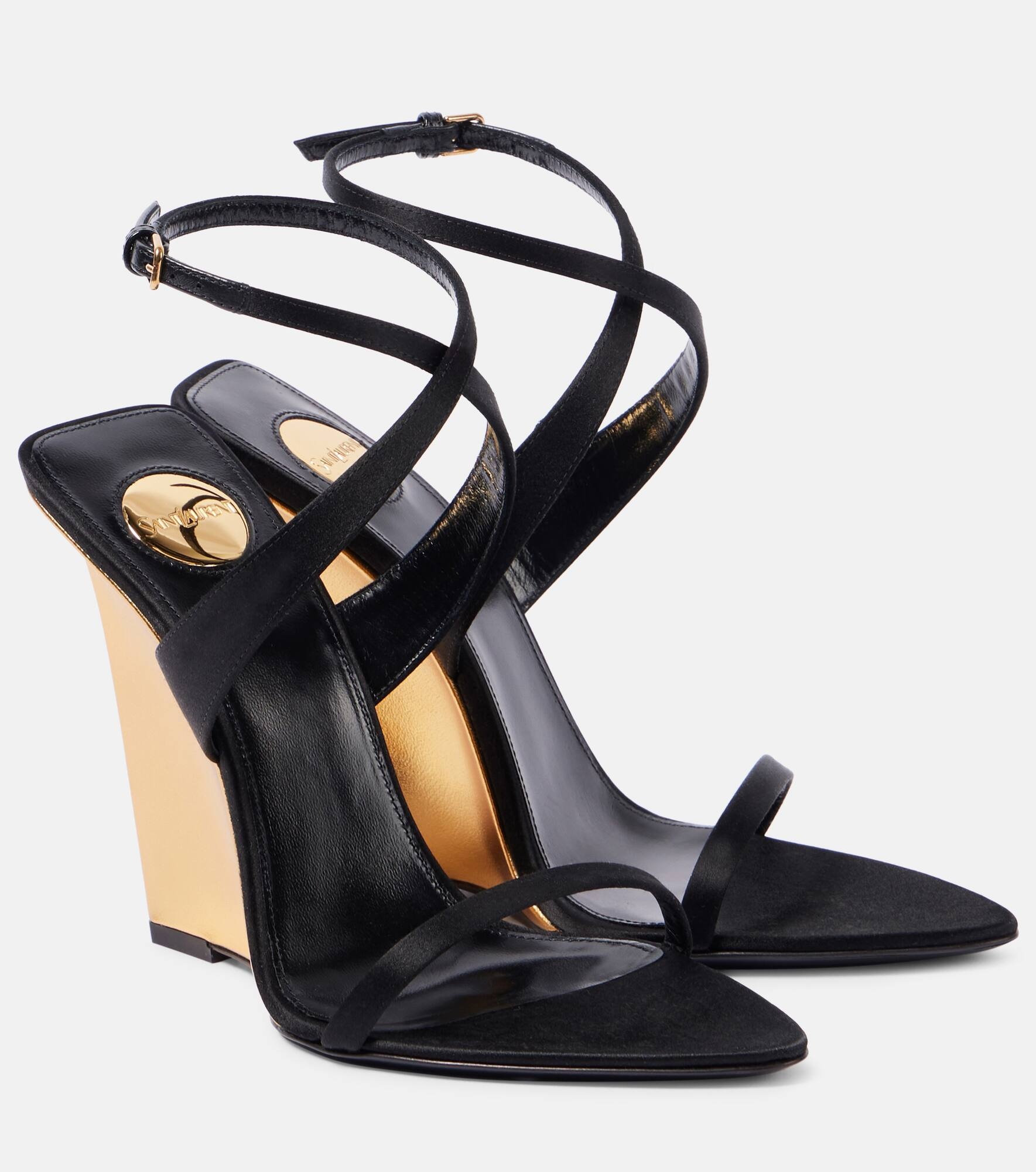 SALOMÉ WEDGES IN SATIN CREPE AND METALLIC LEATHER