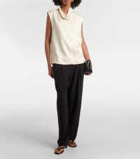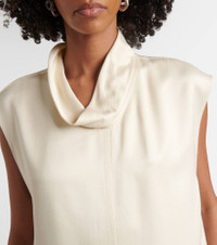 Define your dress code with styles from Toteme, a Stockholm-based brand dedicated to creating a modern uniform. This satin top features a draped neck, capped sleeves and an invisible zip closure. Product Details - Material: 100% viscose - Care instructions: dry clean - Made in Portugal - Designer color name: Ecru - Closure: invisible zipper - Item number: P01040512 Size & Fit - True to size - Designed for a loose fit - Non-stretchy fabric - Falls to the hip - The model seen in the picture is 178cm-5'10" and wearing a size DT 34