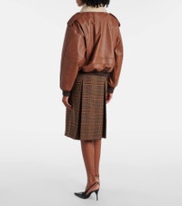 Since its conception in 1961, Saint Laurent has been coveted for its elegant Parisian aesthetic. This leather bomber jacket features a detachable shearling collar and is finished with ribbed trims and front flap pockets. Product Details - Material: 100% calf leather - Care instructions: specialist clean - Made in Italy - Designer color name: Marron Terracotta - Item color: brown - Material II: 100% shearling - Lining: 60% cupro, 40% cotton - Pocket lining: 100% cotton - Trim: 100% wool - Filling: 100% polyester - Contains non-textile parts of animal origin - Collar: classic (Straight point) - Closure: zipper, snap-button fastenings - Detachable collar - Cuff: ribbed - Hem: ribbed - Pockets: flap pockets, internal pocket - Epaulettes - Includes: garment bag - Item number: P01078572 Size & Fit - True to size - Dropped shoulders - Designed for a loose fit - Elasticated hem - Non-stretchy fabric - Falls to the hip - The model seen in the picture is 178cm-5'10" and wearing a size FR 34