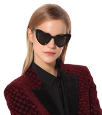 Add a playfully Parisian element to your accessories rotation with Saint Laurent's SL 181 Loulou sunglasses. Playful in their retro-inspired heart shape that's suggestive of a cat-eye profile, the black acetate design exudes romantic attitude – whether you're wearing them to the beach or as the finishing touch to a party ensemble. Pair yours with a red lip and a ponytail to put them in full focus. Product Details - Frame color: black - Frame material: acetate - Lens color: black - Lens type: tinted lenses - comes in a logo-embossed case - Made in Italy - 100% UV protection - Item number: P00326234 Size & Fit - Lens width: 54mm-2.15" - Bridge size: 21mm-0.85" - Earpiece length: 145mm-5.7"