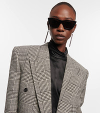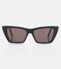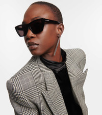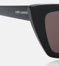 Saint Laurent's SL 276 Mica sunglasses fuse retro glamour with modern attitude. Crafted in Italy from sleek black acetate, the rectangular cat-eye design features 100% UV protected gray lenses and is finished with silver-tone branding engraved at the temple. Coordinate the structured style with tailored suits and fluid dresses alike. Product Details - Frame material: acetate - Designer color name: Black - Frame color: black - Lens filter category 3 - Lens color: black - Made in Italy - Includes: logo-embossed case, cleaning cloth - 100% UV protection - Lens type: tinted lenses - The color of the case may vary - Item number: P00384255 Size & Fit - Lens width: 53mm-2.1" - Bridge size: 16mm-0.65" - Earpiece length: 145mm-5.7"
