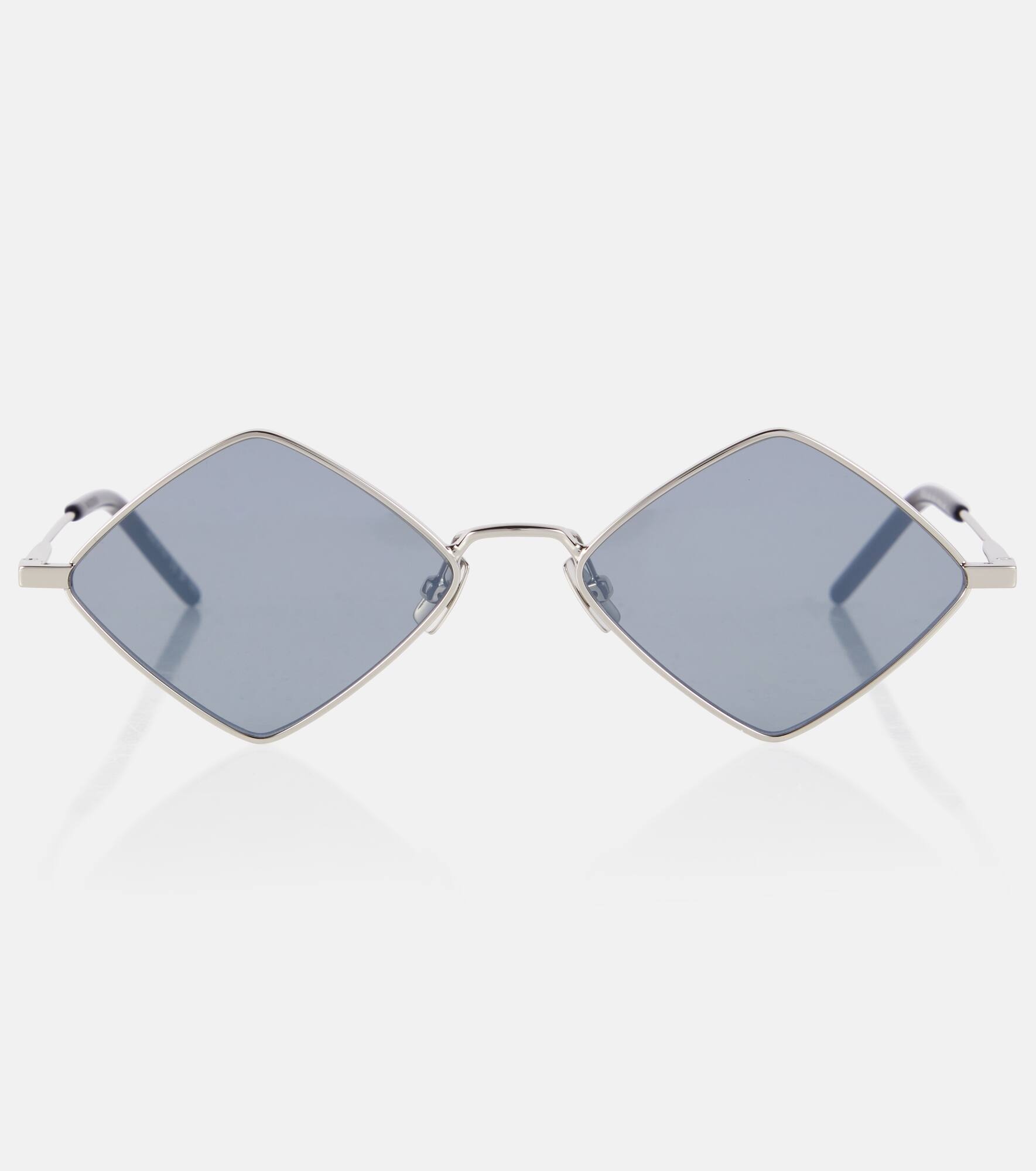 Playful imagination takes center stage for Saint Laurent's SL 302 Lisa sunglasses. Boasting diamond-shaped tinted lenses that offer UV protection, this style has a slim metal frame with covered tips. Product Details - Frame color: silver - Made in Italy - Lens color: grey - Frame material: acetate - The color of the case may vary - comes with cleaning cloth - Lens filter category 2 - comes in a case - Item number: P00808473 Size & Fit - Lens width: 55mm-2.15" - Bridge size: 17mm-0.65" - Earpiece length: 145mm-5.7"