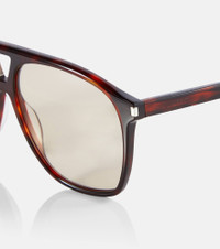 Give your accessories edit a minimalist makeover with the Saint Laurent SL 596 aviator sunglasses. Linked by a double bridge, they're made from tortoiseshell effect acetate with a subtle logo and silver-toned detailing. Product Details - Frame color: tortoiseshell - Frame material: acetate - Lens color: light brown - comes in a logo-embossed case - comes with cleaning cloth - The color of the case may vary - Lens filter category 1 - Made in Italy - Item number: P00782051 Size & Fit - Lens width: 58mm-2.3" - Bridge size: 14mm-0.55" - Earpiece length: 145mm-5.7"
