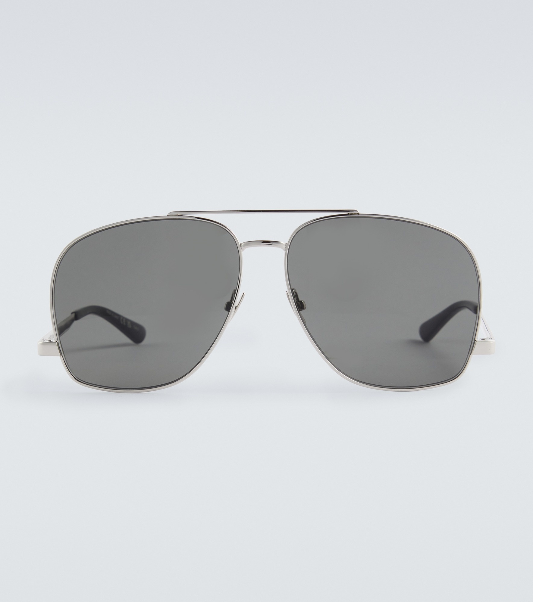 The SL 653 Leon sunglasses from Saint Laurent have an aviator-style frame, nylon lenses, and a slim double bridge. Its low-set temples set the style apart for a unique and eye-catching look. Product Details - Frame material: metal - Frame color: silver - Lens filter category 3 - Lens color: black - Made in Italy - Includes: cleaning cloth, logo-embossed case - Designer color name: Silver-Silver-Grey - Item number: P00873360 Size & Fit - Lens width: 59mm-2.3" - Bridge size: 13mm-0.5" - Earpiece length: 140mm-5.5"