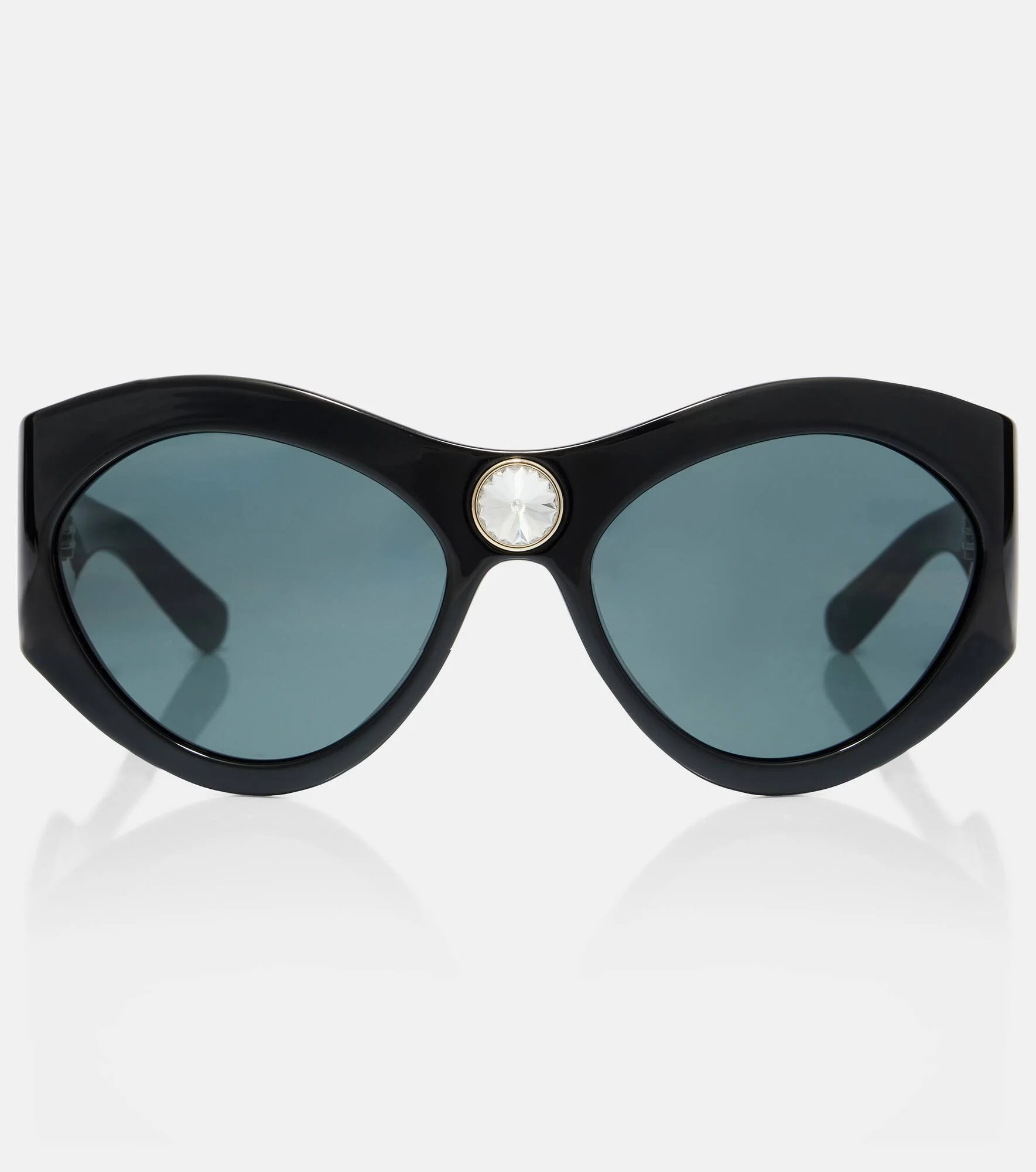 The SL 853 Esther sunglasses from Saint Laurent make a statement, thanks to the sparkling crystal-embellished frames. Crafted in Japan, the oversized design is complete with wide temples featuring four decorative dots. Product Details - Frame material: acetate - Frame color: black - Lens filter category 3 - Lens color: black - Made in Japan - Includes: case, cleaning cloth - The color of the case may vary - Item number: P01098337 Size & Fit - Lens width: 58mm-2.3" - Bridge size: 18mm-0.7" - Earpiece length: 125mm-4.9"
