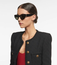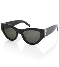 Saint Laurent’s SL M94 cat-eye sunglasses are the go-to accessory for the finishing touch to a chic edge silhouette. Featuring thick acetate frames, these sunglasses lend luxurious versatility to all ensembles, with dark-tinted lenses and striking logo detailing in gold at the temples. Please note the color of the protective case may vary. Product Details - Frame color: black - Frame material: acetate - Lens color: black - Lens type: tinted lenses - comes in a logo-embossed case, comes with cleaning cloth - The color of the case may vary - Lens filter category 3 - Made in Italy - Item number: P00622569 Size & Fit - Lens width: 53mm-2.1" - Bridge size: 20mm-0.8" - Earpiece length: 145mm-5.7"