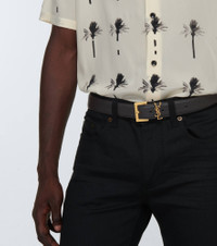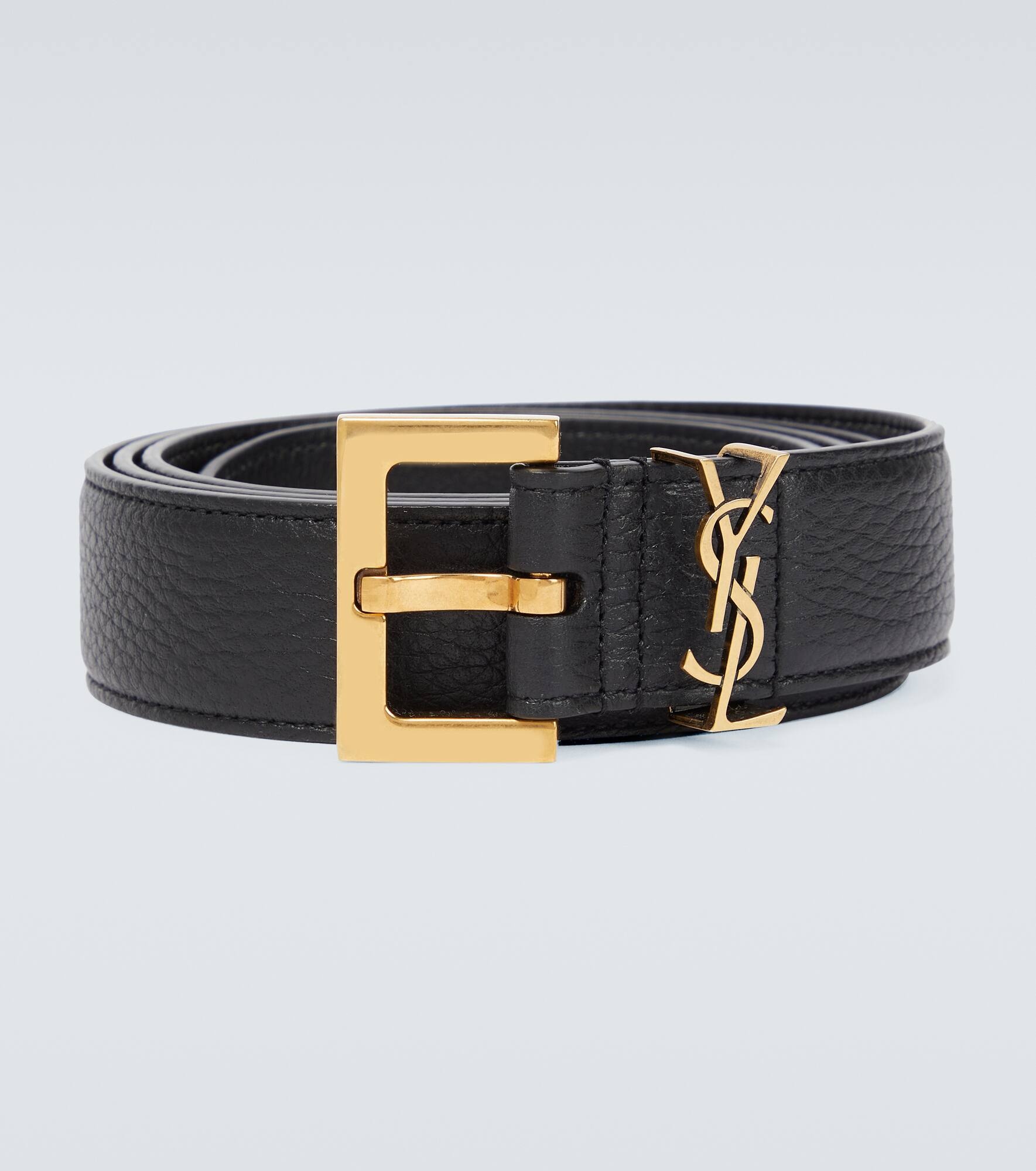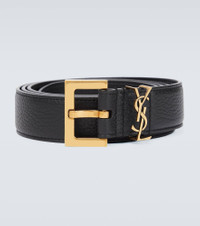 This Saint Laurent belt has an understated slim profile in black leather, and is detailed with the brand's iconic YSL emblem at the clasp. Product Details - Color of chain strap: antique gold - Color of fastening: antique gold - Material: leather - Comes with dust bag - Made in Italy - Adjustable belt strap - Item number: P00709455 Size & Fit - Width 3cm-1" - Buckle width 4cm-1.5"