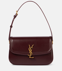 One of the most famous symbols in fashion, the YSL monogram consists of the intertwined initials of Saint Laurent's founder. The Solferino shoulder bag is a polished carryall, crafted from supple leather in a Medium-sized, softly rounded box silhouette. Product Details - Material: leather - Lining: suede - Made in Italy - Designer color name: Rogue Cabernet - Item color: burgundy - Adjustable shoulder strap - Hardware color: bronze - Closure: snap-clasp fastening - Item number: P01040437 Size & Fit - Height 15cm-6" - Width 24cm-9.5" - Depth 8cm-3" - Min. length shoulder strap 49cm-19.5" - Max. length shoulder strap 59cm-23"