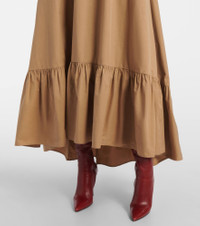 Strapless ruffled cotton-gabardine maxi dress Beige