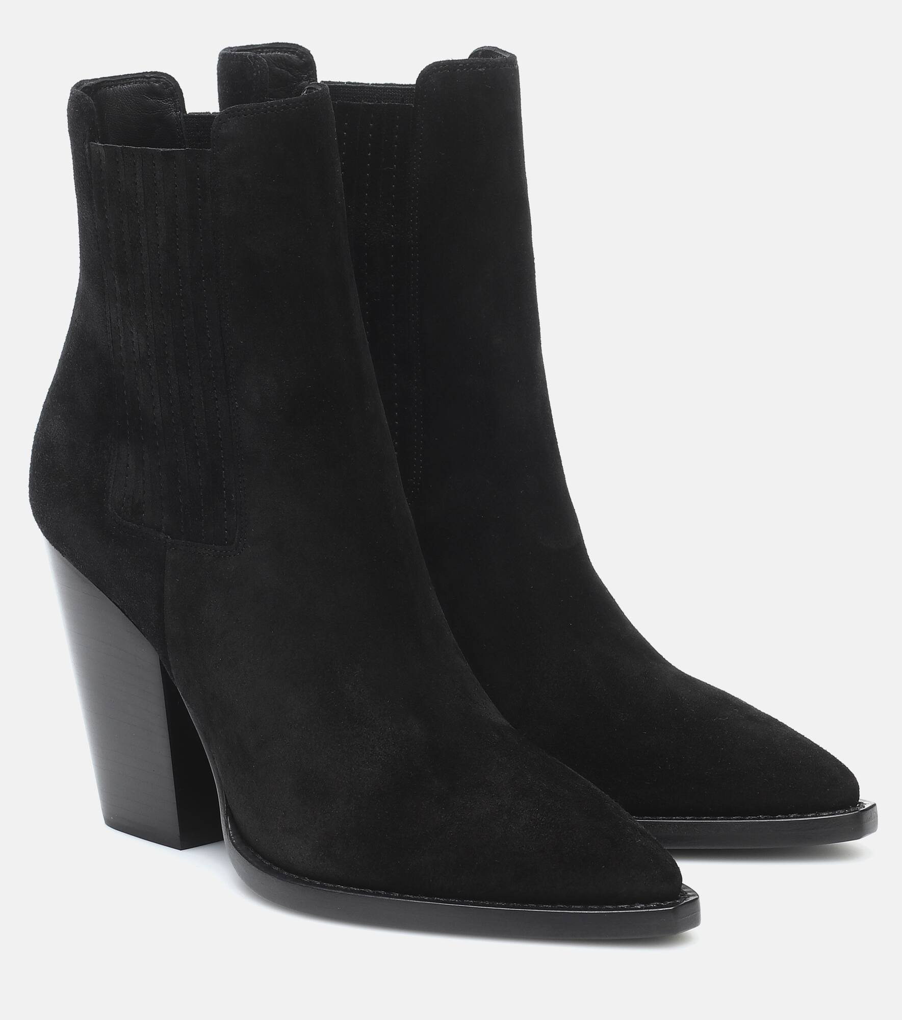 Saint Laurent's Theo ankle boots have been made from plush black suede and are set on 95mm tapered block heels. Pull tabs allow for ease of wear, and sharply pointed toes lend a smart finish. Show yours off with cropped denim on relaxed weekends. Product Details - Lining: leather - Upper: calf leather - Sole: leather insole and sole - Toe shape: pointed toe - Designer color name: Nero - Closure: elasticated sides - Item number: P00509485 Size & Fit - True to size - European sizes - 9,5cm-3.5" heel (size EU 38)