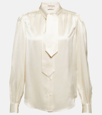 Tie-neck silk satin blouse