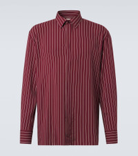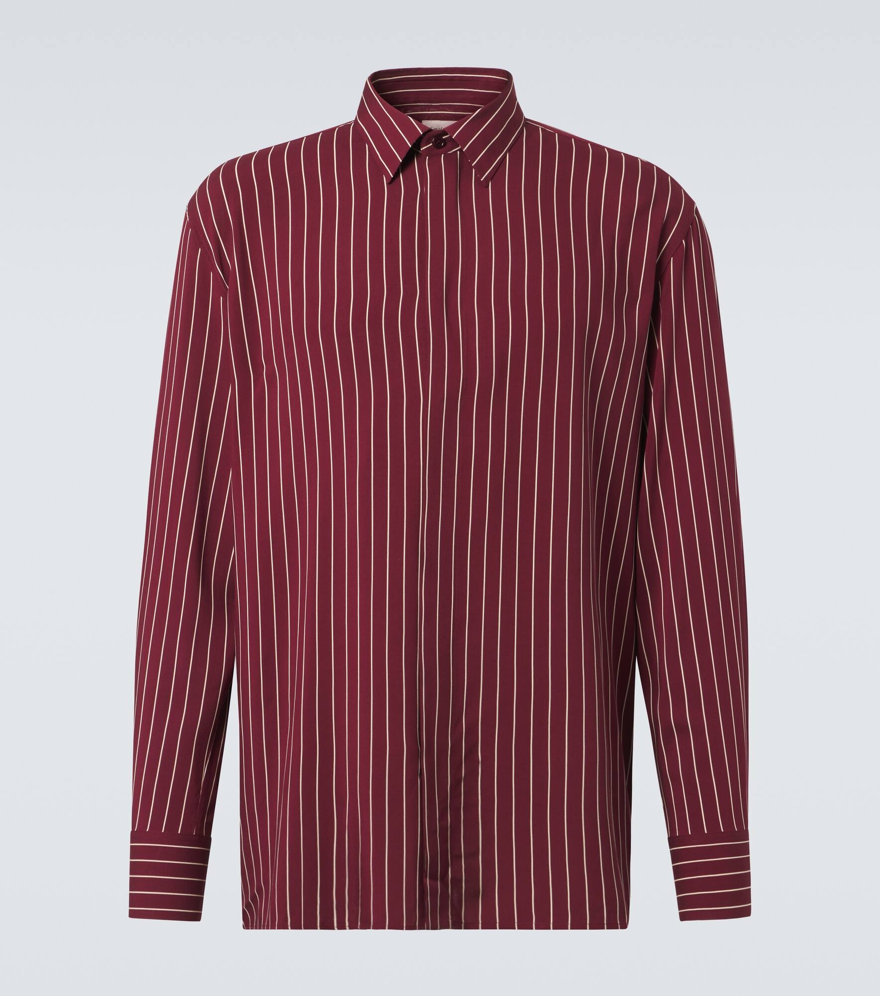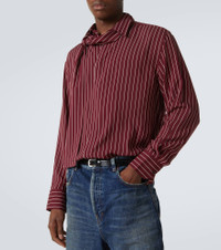Since its conception in 1961, Saint Laurent has been coveted for its elegant Parisian aesthetic. This shirt has a tie-neck detail and an all-over contrasting stripe pattern. Product Details - Material: 100% viscose - Care instructions: dry clean - Made in Italy - Designer color name: Bordeadx Craie - Item color: burgundy - Closure: buttoned front - Item number: P01011667 Size & Fit - True to size - Without pleats in the back - Classic fit - Non-stretchy fabric - Falls below the hip - Height of model is 189cm-74.5" and wears a size EU 41