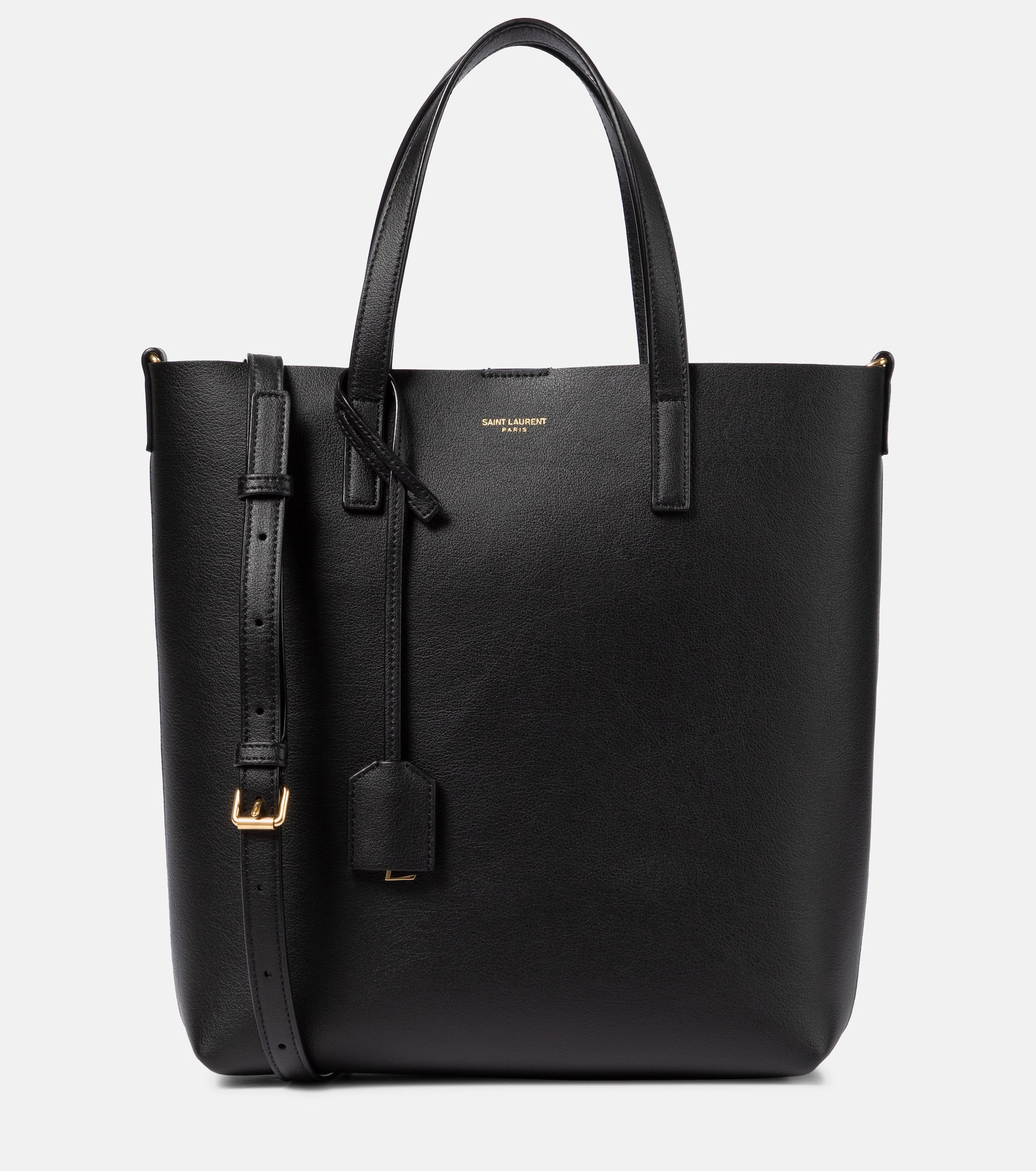 The Saint Laurent woman exudes Parisian sophistication as she saunters along city streets – usually with the Shopping Toy N/S tote bag over one shoulder. Made from smooth calf leather, it's subtly embossed with golden logo detailing and adorned with an encased monogram tag. The black colorway will will slot seamlessly into your everyday rotation. Product Details - Detachable, adjustable shoulder strap, Top handles - Color of fastening: gold - Designer color name: Nero - Made in Italy - Comes with dust bag - Closure: magnetic fastening - Material: calf leather - Internal details: leather lining - Item number: P00533625 Size & Fit - Height 27cm-10.5" - Width 24,5cm-9.5" - Depth 8cm-3" - Length of handles 31cm-12" - Min. length shoulder strap 96cm-38" - Max. length shoulder strap 116cm-45.5"