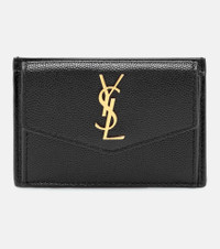 Crafted in Italy from black calfskin leather, the Uptown card case from Saint Laurent is as sophisticated as its name would imply. The design has a flap with the label's iconic golden YSL hardware. Although petite, it comes with a center compartment, a slip pocket, and six card slots. Product Details - Closure: snap-buttoned fastening - Color of fastening: gold - Internal details: leather lining - Material: leather - Comes with dust bag - Made in Italy - Item number: P00434420 Size & Fit - Height 7cm-3" - Width 10,5cm-4" - Depth 1,5cm-0.5"