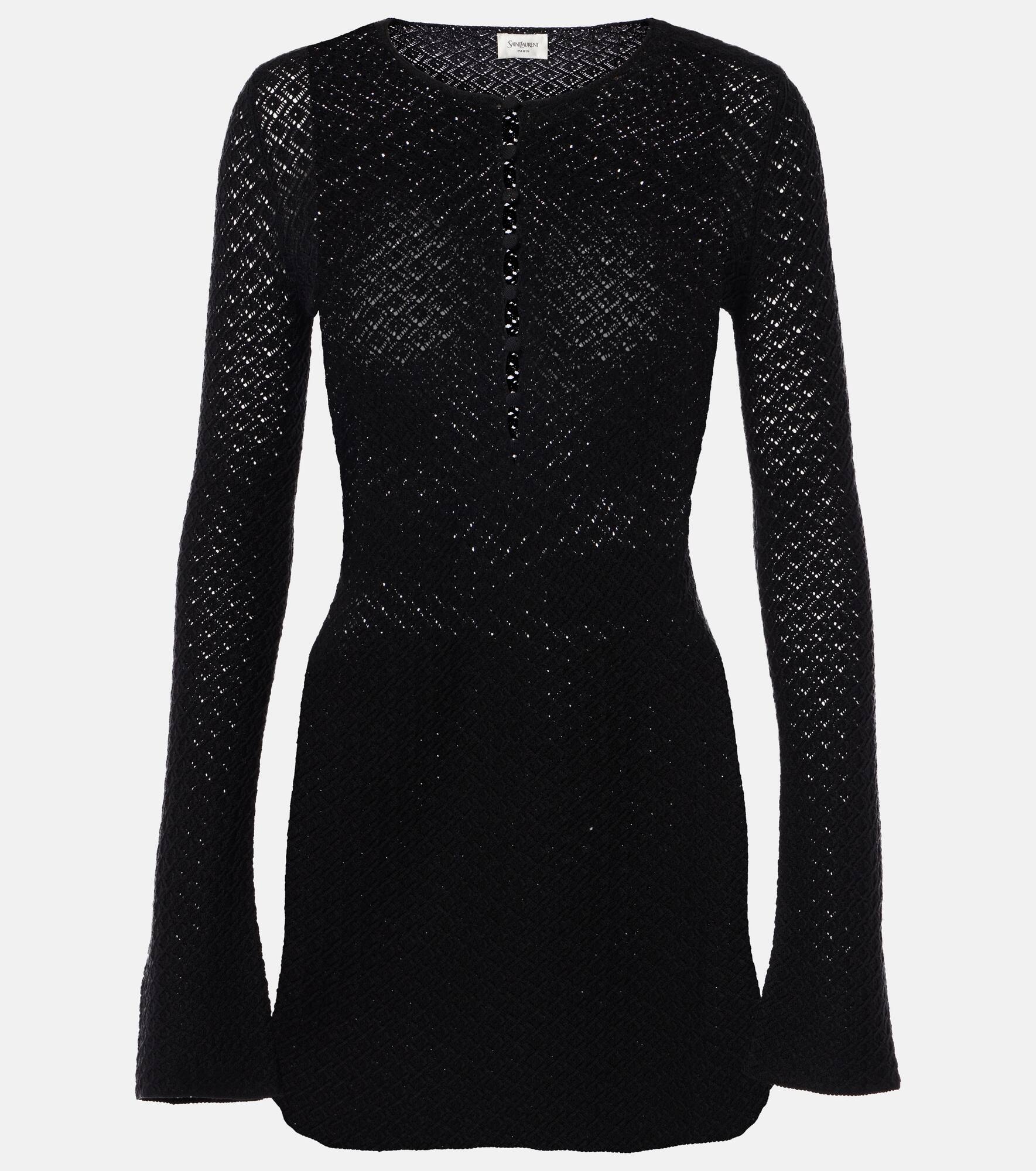 Wool-blend crochet minidress