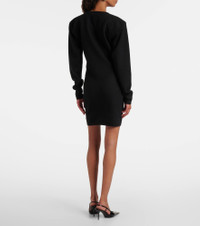 This Saint Laurent minidress is a day-to-night companion for the colder months with its soft, warm texture. Crafted from a wool blend, the piece is finished with long sleeves and a classic crewneck. Product Details - Material: 94% wool, 4% polyamide, 2% elastane - Care instructions: dry clean - Made in Italy - Designer color name: Noir - Item color: black - Lining: 100% wool - Includes: box - Item number: P01086659 Size & Fit - True to size - Oversized shoulders - Cinched waist - Stretchy fabric - The model seen in the picture is 178cm-5'10" and wearing a size XS