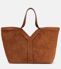 Since its conception in 1961, Saint Laurent has been coveted for its elegant Parisian aesthetic. The Y tote bag is a minimalist design crafted from suede and finished with tonal trims and signature Y embroidery. Product Details - Material: leather - Lining: suede - Made in Italy - Designer color name: Dark Caramel Cogn - Item color: brown - Closure: lobster-clasp fastening - Hardware color: gold - Internal details: internal zipped pocket - Top handles - Item number: P01066923 Size & Fit - Height 34cm-13.5" - Max. width 55cm-21.5" - Max. depth 22cm-8.5" - Length of handles 42cm-16.5"