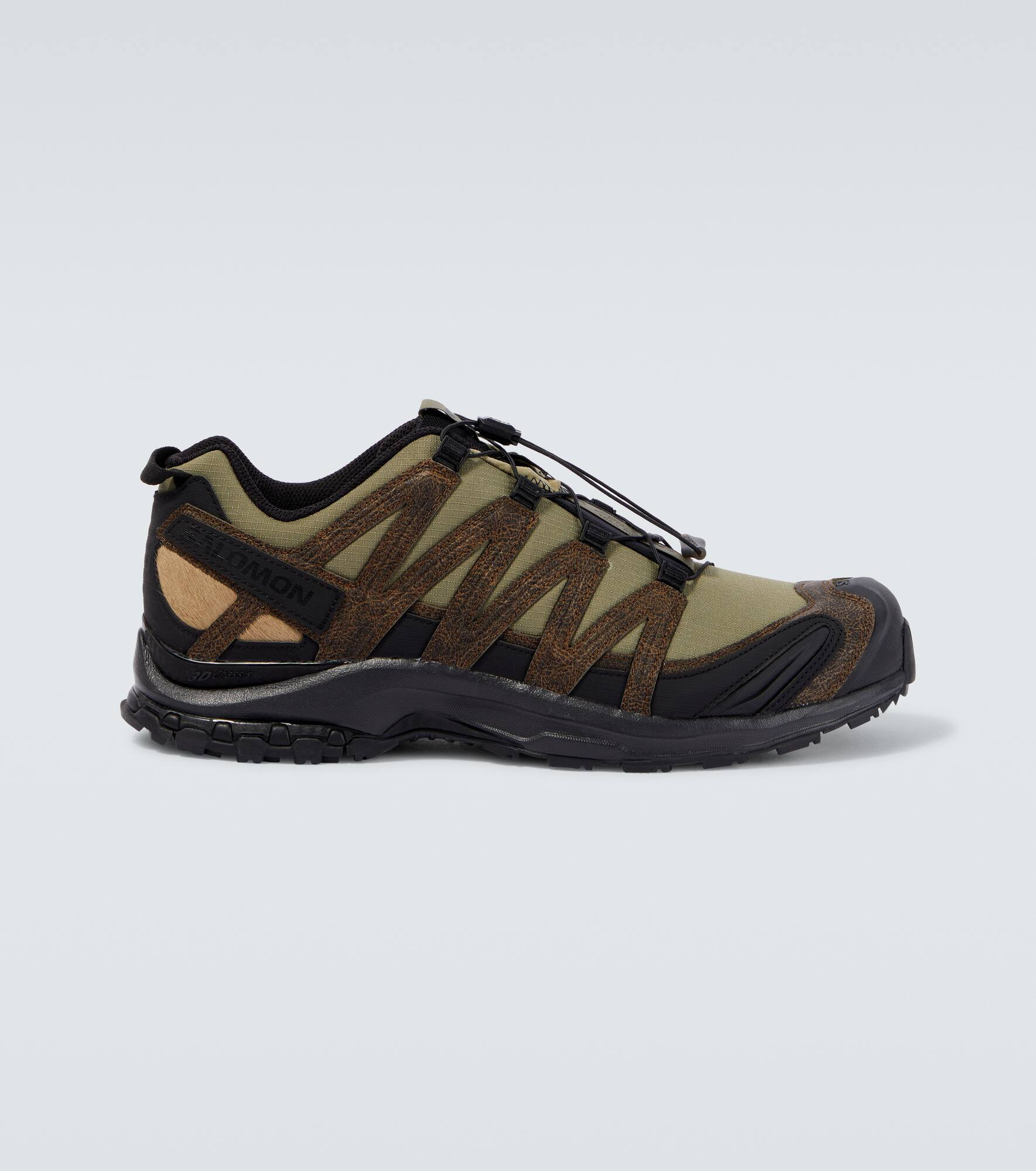 The XA Pro 3D sneakers from Salomon seamlessly bring together style and function. Built with lightweight uppers, this pair offers optimal grip and stability and is perfect for a variety of terrains. Product Details - Upper: calf hair, rubber, fabric - Lining: fabric - Sole: fabric insole, rubber sole - Toe shape: round toe - Made in Vietnam - Includes: shoe box - Designer color name: Dark Earth/Black - Item color: green, black - Closure: drawstring - Item number: P01071147 Size & Fit - Fits slightly small to size - we recommend trying a half size larger - UK sizes