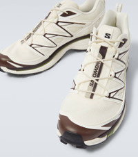 Look to Salomon for utilitarian designs with modern appeal. The XT-6 Expanse sneakers are complete with comfortable soles and contrasting trims. Product Details - Upper: fabric - Lining: fabric - Sole: fabric insole, rubber sole - Toe shape: almond toe - Made in Vietnam - Includes: shoe box - Designer color name: Vanilla Ice/Black Coffee/Calla - Item color: white, brown - Trim: rubber - Closure: lace-up - Item number: P01012044 Size & Fit - Fits slightly small to size - we recommend trying a half size larger - UK sizes