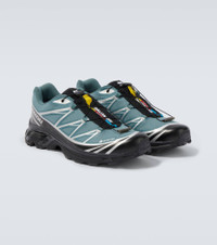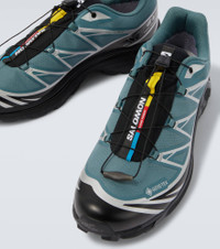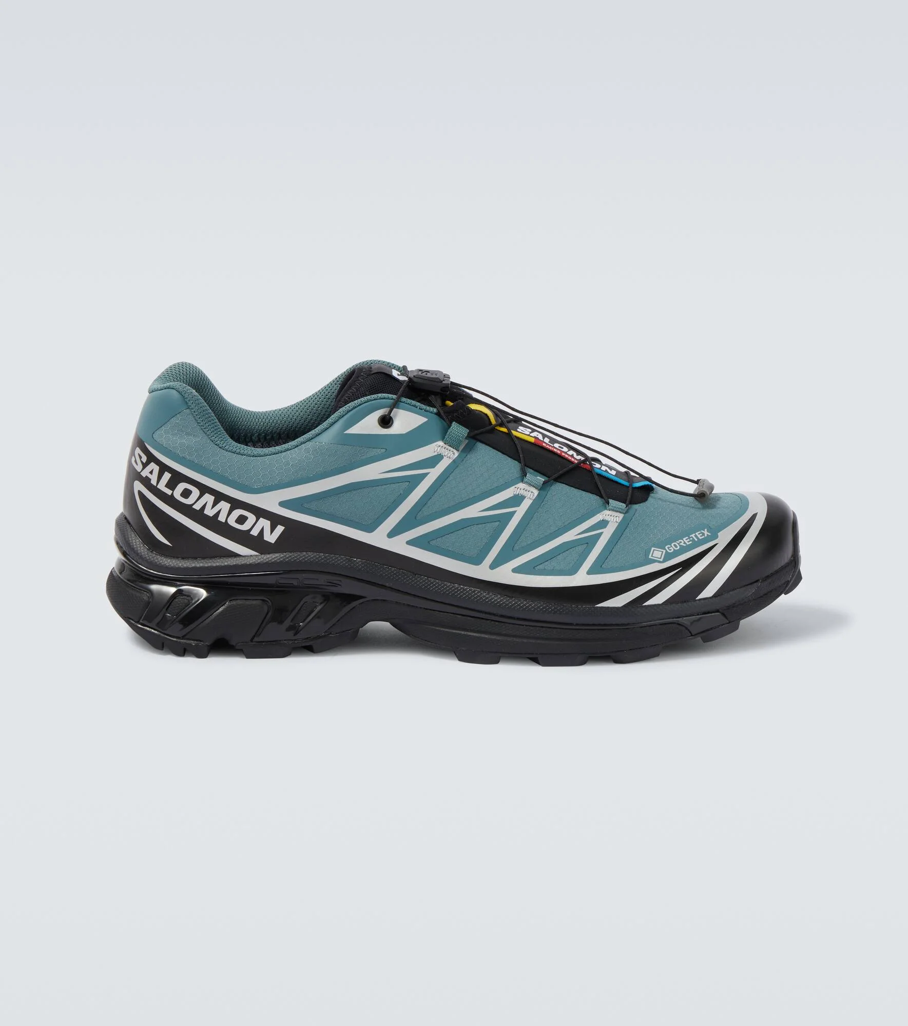 The XT-6 GTX sneakers from Salomon effortlessly blend advanced outdoor technology with street-ready style, featuring hiking-inspired laces. This model ensures breathability and protection, perfect for those who demand performance without compromising on style. Product Details - Upper: fabric, rubber - Lining: fabric - Sole: fabric insole, rubber sole - Toe shape: almond toe - Made in China - Includes: shoe box - Designer color name: North Atlantic/Black - Item color: blue - Item number: P01071161 Size & Fit - Fits slightly small to size - we recommend trying a half size larger - UK sizes