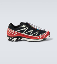 The XT-6 GTX sneakers from Salomon effortlessly blend advanced outdoor technology with street-ready style, featuring hiking-inspired laces. This model ensures breathability and protection, perfect for those who demand performance without compromising on style. Product Details - Upper: fabric, rubber - Lining: fabric - Sole: fabric insole, rubber sole - Toe shape: almond toe - Made in Cambodia - Includes: shoe box - Designer color name: Black/Flame Scarlet/Vanilla - Item color: black, red - Item number: P01071162 Size & Fit - Fits slightly small to size - we recommend trying a half size larger - UK sizes