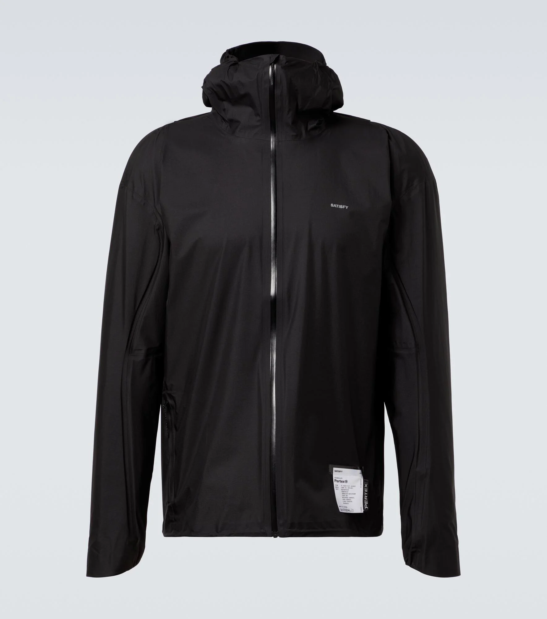 The Satisfy Pertex® 3L Fly Rain Jacket combines waterproof protection with breathability. The functional design has reinforced sleeves, and an ergonomic hood—perfect for trail running and unpredictable weather. Product Details - Material: 100% polyamide - Care instructions: machine wash at 30 degrees - Made in China - Designer color name: Black - Item color: black - Closure: zipped front - Pockets: zipped pockets - Item number: P01026000 Size & Fit - True to size - Designed for a loose fit - Adjustable hem - Non-stretchy fabric - Falls to the hip - Height of model is 188cm-74" and wears a size L