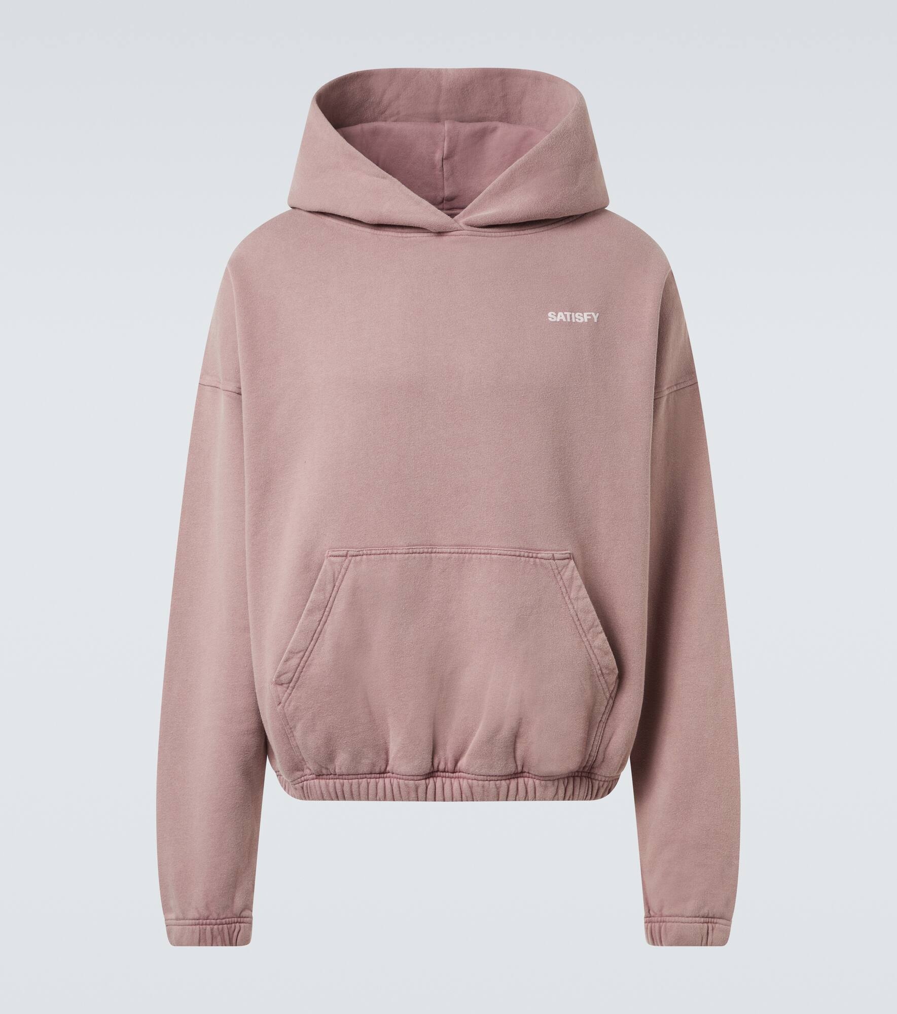 The Satisfy SoftCell™ Hoodie is crafted from French terry cotton for ultimate comfort. Featuring elasticized cuffs, a mini S-Carabiner pocket, and "Running Cult Member" branding, it’s a versatile piece for post-run relaxation. Product Details - Material: 100% cotton (organic) - Care instructions: machine wash at 30 degrees - Made in Portugal - Designer color name: Aged Elderberry - Item color: pink - Pockets: kangaroo pocket - Hood - Item number: P01026003 Size & Fit - True to size - Dropped shoulders - Designed for a loose fit - Elasticated hem - Slightly stretchy fabric - Height of model is 188cm-74" and wears a size L