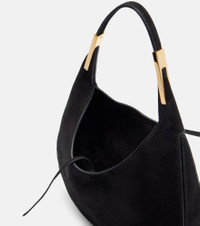 The Florence shoulder bag from Savette showcases the brand's affinity for timeless craftsmanship. Carefully made from black suede, this Small style comes in a curved silhouette accented by gold-toned hardware and features an internal slot pocket. Product Details - Material: calf leather (suede) - Lining: suede - Made in Italy - Color: black - Designer color name: Black - Hardware color: gold - Top handle - Closure: self-tie closure - Item number: P01136840 Size & Fit - Min. height 16cm-6.5" - Max. height 23cm-9" - Max. width 24cm-9.5" - Depth 4cm-1.5" - Length of handle 30cm-12"