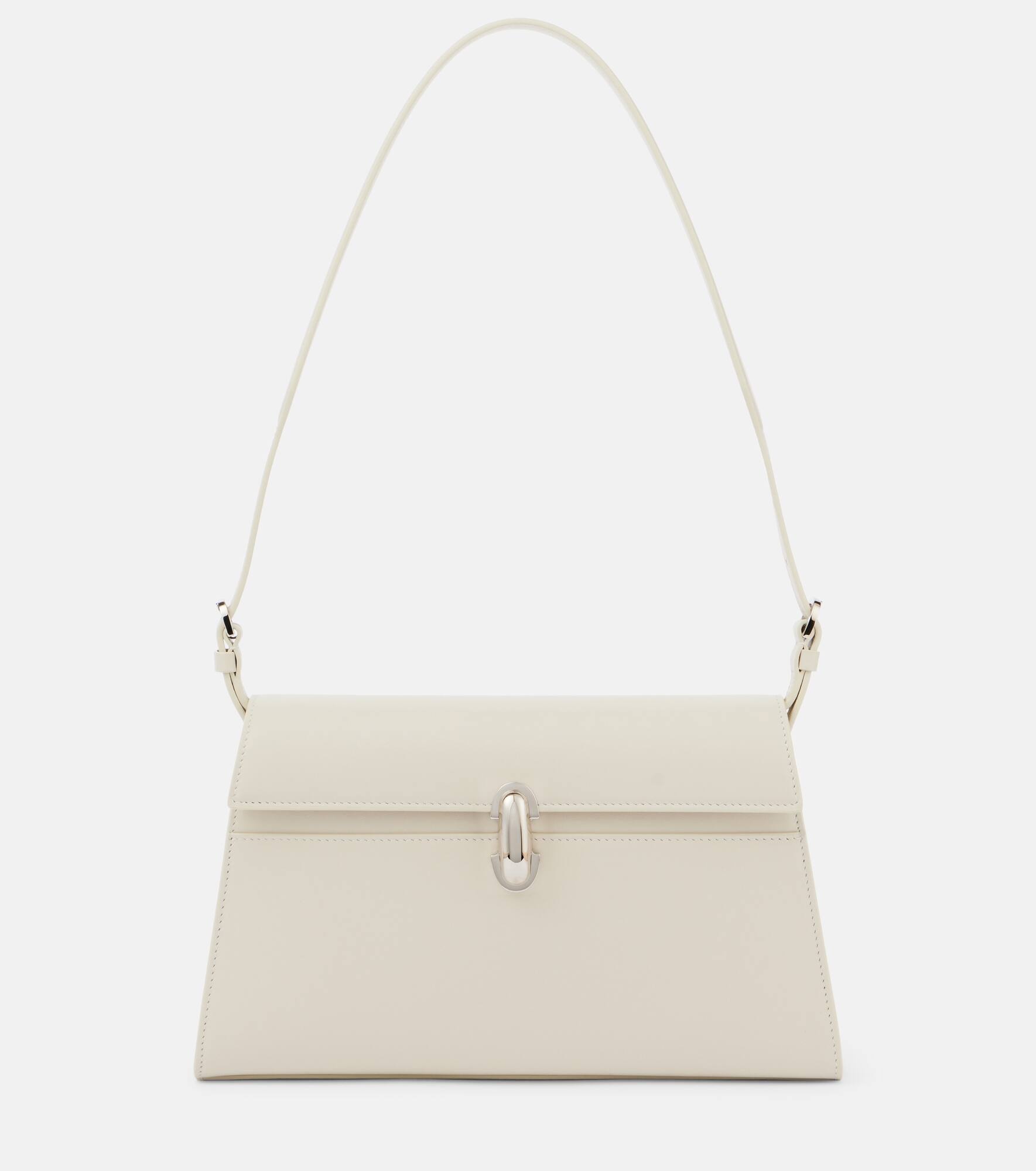 Merging classic leatherwork with contemporary refinement, Savette crafts structured handbags that embody quiet luxury and sophistication. The Symmetry 19 shoulder bag features two interior pockets and a convertible strap, which can be worn crossbody, over the shoulder, or carried by hand. Product Details - Material: leather - Lining: leather - Made in Italy - Designer color name: Ivory - Item color: ivory - Hardware color: silver - Adjustable top handle - Closure: turn-lock fastening - Internal details: internal slot pocket - Item number: P01019065 Size & Fit - Height 16cm-6.5" - Max. width 26,5cm-10.5" - Depth 5cm-2" - Adjustable shoulder strap - Min. length shoulder strap 52cm-20.5" - Max. length shoulder strap 72cm-28.5"