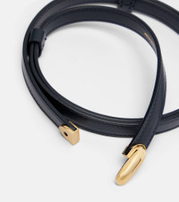 Part of Savette's Symmetry family, this belt will be a timelessly elegant addition to your accessories collection. The design is carefully crafted from smooth leather and features a gold-toned snap closure for a polished finish. Product Details - Material: calf leather - Lining: calf leather - Made in Italy - Designer color name: Navy - Item color: blue - Hardware color: gold - Includes: dust bag - Item number: P01057034 Size & Fit - Adjustable length - Width 1,2cm-0.5" - Buckle width 1,2cm-0.5" - Max. length 99cm-39"