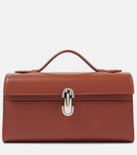 Product Details - Material: calf leather - Lining: leather - Made in Italy - Designer color name: Maple - Internal details: card slot - Closure: turn-lock fastening - Top handle - Includes: dust bag - Item number: P01004787 Size & Fit - Height 12cm-4.5" - Max. width 22cm-8.5" - Depth 7,5cm-3" - Suitable for large smartphones (e.g. iPhone 12 Pro Max / Samsung Galaxy A72, S21 Ultra/ Huawei P40 Pro, Mate 40 pro)