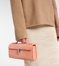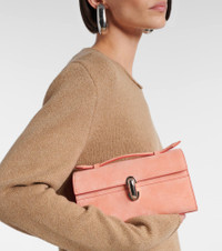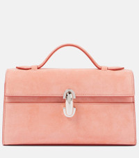 Merging classic leatherwork with contemporary refinement, Savette crafts structured handbags that embody quiet luxury and sophistication. The Symmetry Pochette tote bag features the brand's signature turnlock and a leather handle. Product Details - Material: leather (suede) - Lining: leather - Made in Italy - Designer color name: Camellia - Item color: pink - Top handle - Closure: turn-lock fastening - Hardware color: silver - Item number: P01019071 Size & Fit - Height 13cm-5" - Max. width 22cm-8.5" - Depth 7,5cm-3" - Length of handle 12cm-4.5"