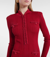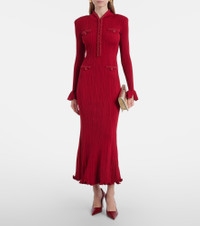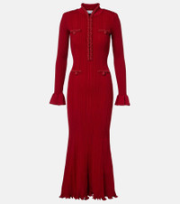 beaded-trim ribbed midi dress