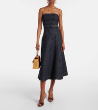 Belted strapless midi dress