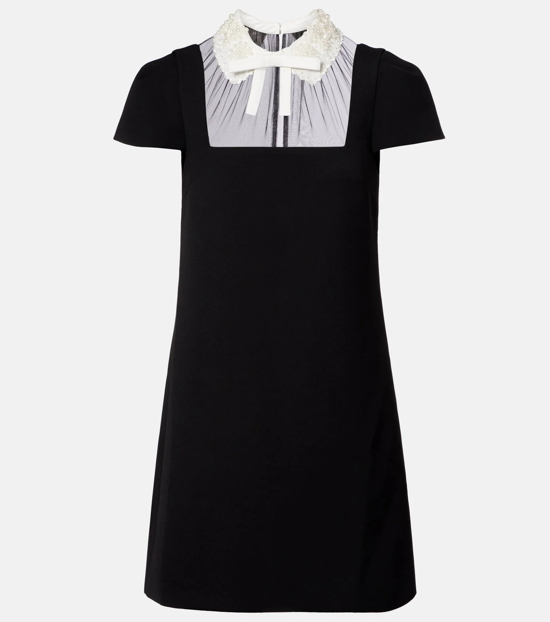 Self-Portrait has built a strong cult following for its soft graceful aesthetic. This minidress is crafted from black crepe with a contrasting bow-topped collar and a sheer neckline. Product Details - Material: 100% polyester - Care instructions: dry clean - Made in China - Color: black - Designer color name: Black - Item color: black - Material II: 100% polyamide - Material III: 100% cotton - Lining: 100% polyester - Closure: concealed zipped back - Item number: P01127521 Size & Fit - True to size - Straight fit - Non-stretchy fabric - The model seen in the picture is 178cm-5'10" and wearing a size UK 8