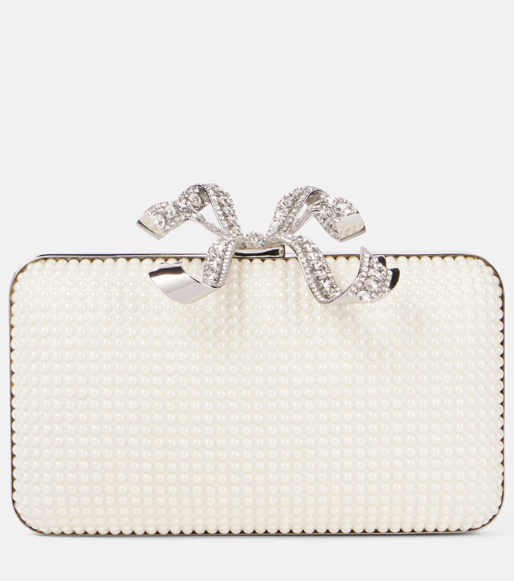Bow faux pearl-embellished clutch