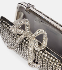Product Details - Material: fabric, crystals - Lining: fabric - Made in China - Designer color name: Silver - Detachable shoulder strap - Closure: magnetic fastening - Internal details: card slot - Includes: dust bag, box - Color of chain strap: silver - Item number: P01002217 Size & Fit - Height 10,5cm-4" - Width 18cm-7" - Depth 6cm-2.5" - Chain length 109cm-43" - Suitable for medium smartphones (e.g. iPhone 12, 12 Pro/ Samsung Galaxy S21/ Huawei P40)