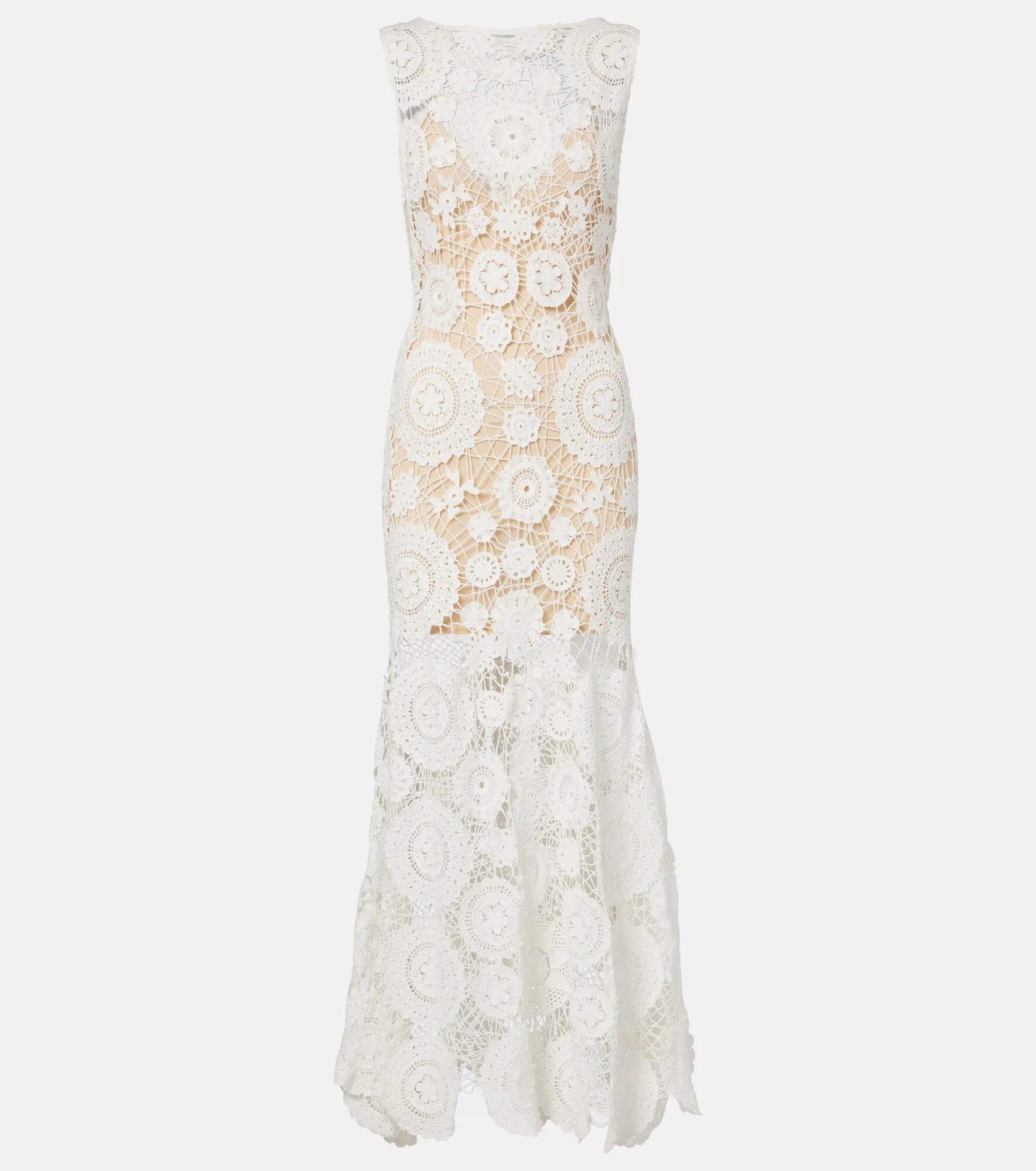 With a mission to celebrate women in every design, Self-Portrait has built a strong cult following for its graceful aesthetic. This maxi dress is characterized by its crocheted construction. Product Details - Material: 100% cotton - Care instructions: dry clean - Made in China - Color: white - Designer color name: White - Trim: 77% viscose, 23% polyamide - Hem: scalloped - Item number: P01147040