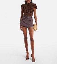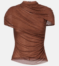 Crystal-embellished draped mesh top