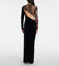 Cutout lace-trimmed velvet maxi dress