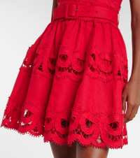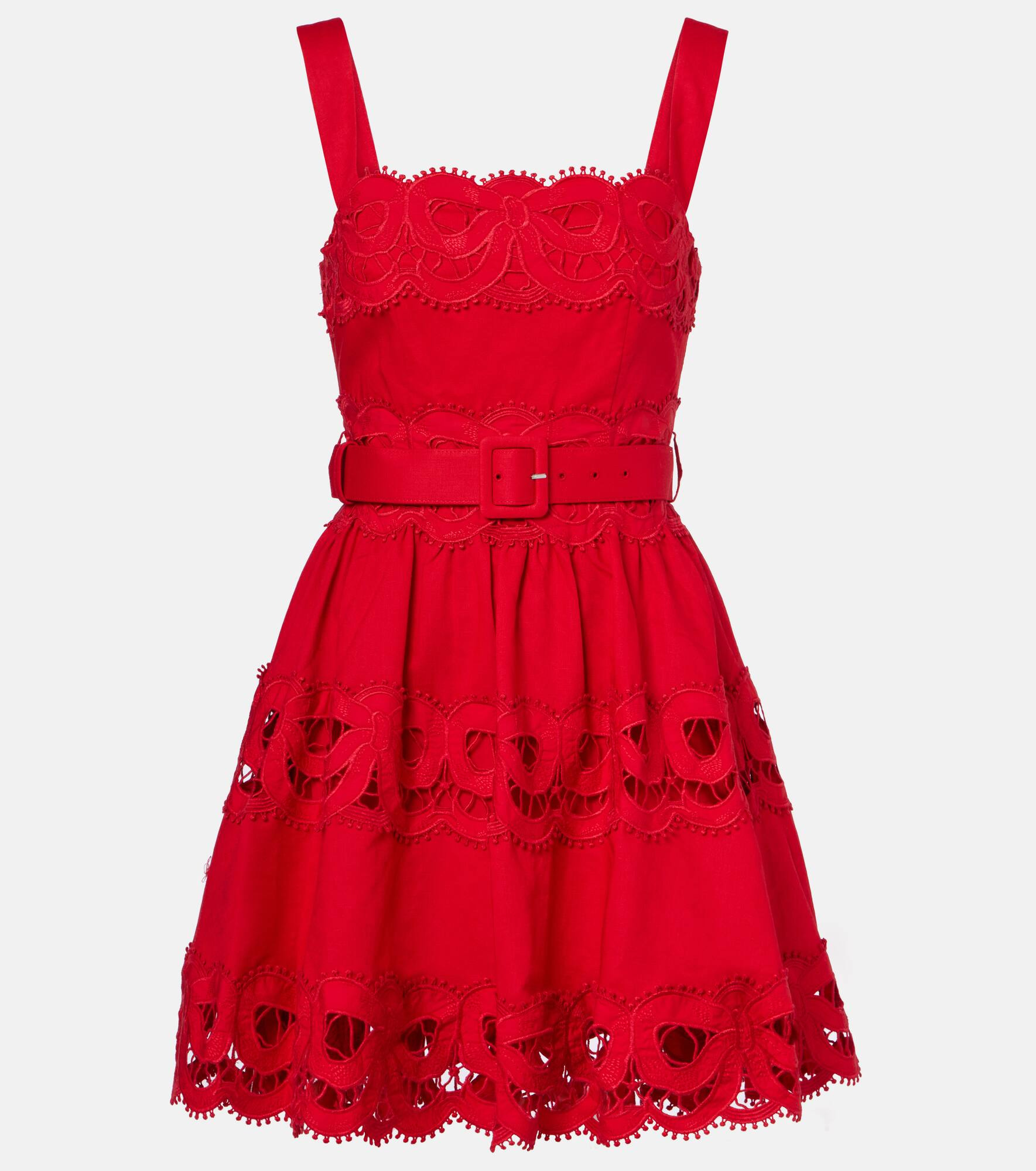 Crafted from a linen and cotton-blend, this minidress from Self-Portrait showcases cutout detailing all over. This design is cut to a fitted silhouette and features a removable belt to cinch the waist. Product Details - Material: 52% linen, 48% cotton - Care instructions: do not wash - Made in China - Designer color name: Red - Item color: red - Trim: 100% cotton - Embroidery: 100% polyester - Lining: 100% cotton - Details: 52% linen, 48% cotton - Closure: zipped back - Detachable belt - Item number: P01074946 Size & Fit - True to size - Cinched waist - Non-stretchy fabric - The model seen in the picture is 178cm-5'10" and wearing a size UK 8